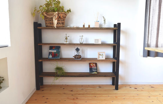 □棚板/脚:ナラ(五泉市産) □塗装:棚板 Tanned Black 側板 Tanned Black ※棚は分解可能。組み立て式。